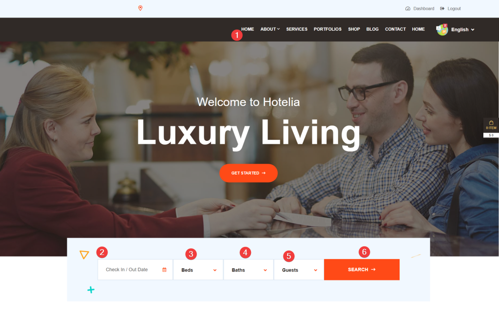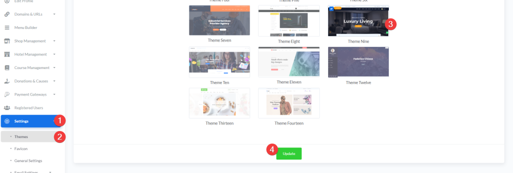 Dashboard → Settings → Themes → Theme Nine → Hotel Management