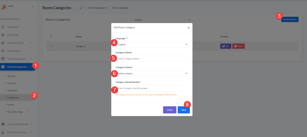 | Category Status | Active / Deactive | Controls visibility of room categories | Determines whether categories are shown publicly |